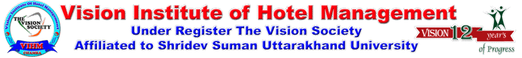 VIHM was started at 2016 with a vision of skills in enhancement of youth in hospitality sector. Due to poor condition of professional education in remote area of Uttarakhand the vision society found that youth are not getting there deserving position so that the vision society initiated VIHM with the minimum fee. Our vision is to provide quality education as well as good placement. So VIHM as started its mission to provide quality human resource in Hospitality sector.